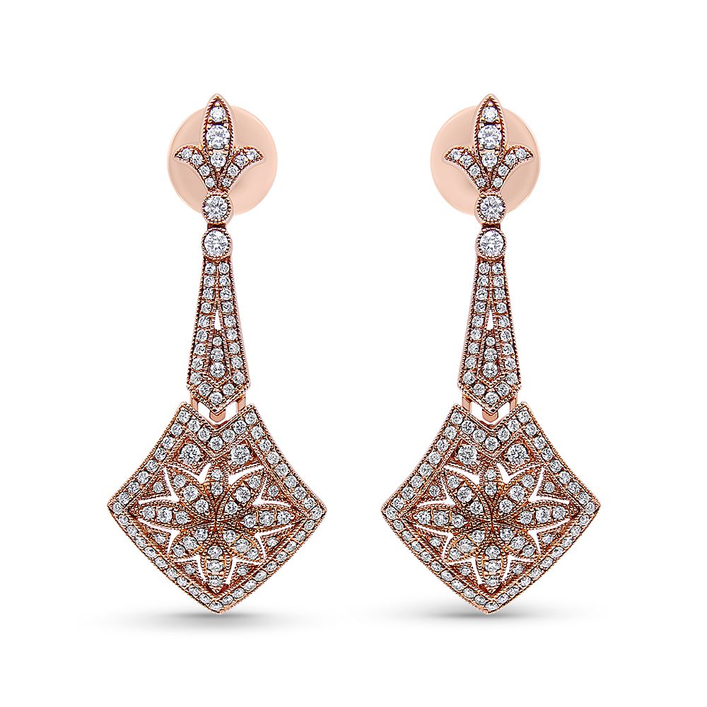 Design: Inspired by Paris with Fleur-de-Lis motifs Metal: Elegant 18K rose gold with intricate milgrain detailing Diamonds: Total 220 natural diamonds (VS1-VS2 Clarity, F-G Color) in pavé and bezel settings Accents: Floral patterns for added sophistication Length: 1 ¾ inches Style: Refined, historical, and culturally inspired
