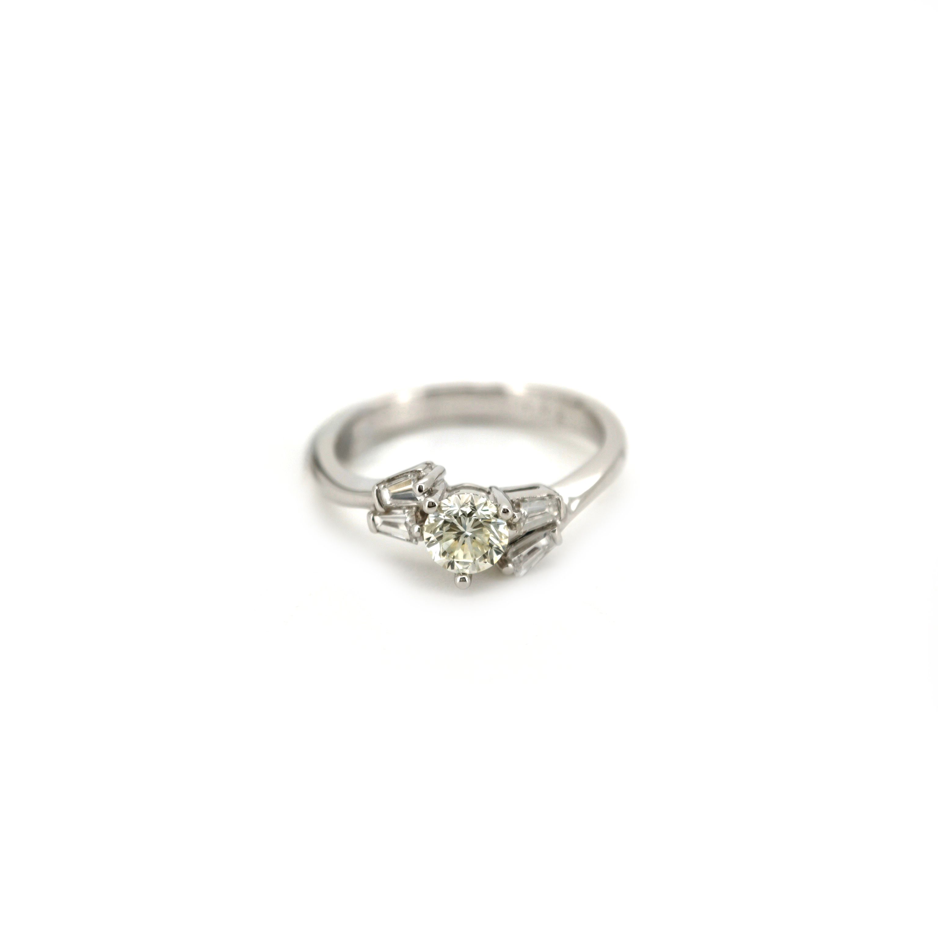 This exquisite 18K white gold ring is studded with a stunning round diamond, showcasing a total carat weight of 0.52ct. The elegant design highlights the brilliance of the diamond, making it a perfect choice for any special occasion.