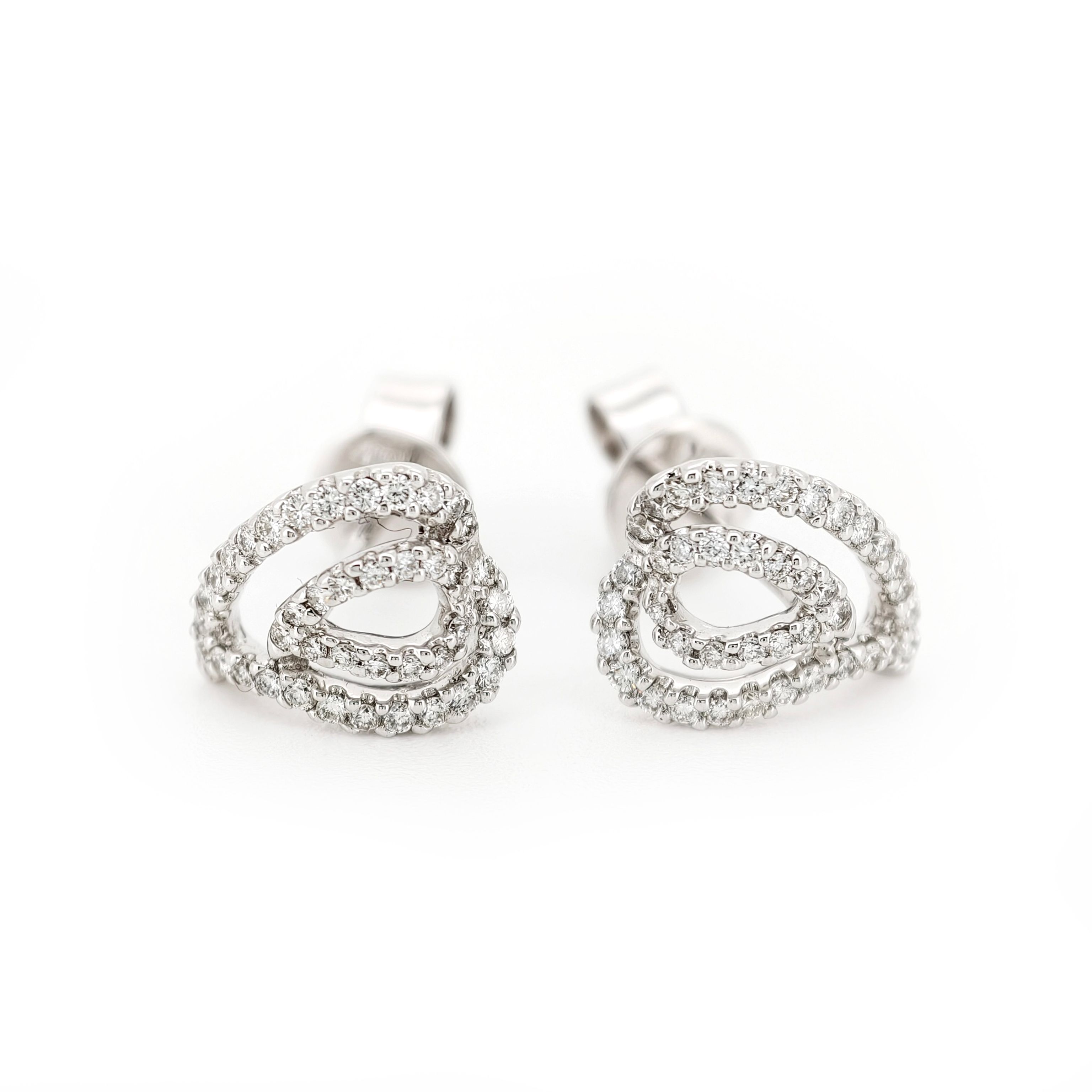 Exquisite 18K white gold earrings showcase diamond brilliance, masterful artistry, sophisticated lines, shimmering elegance, opulent luxury, meticulous craftsmanship, graceful sparkle, radiant beauty, and timeless charm for discerning tastes.