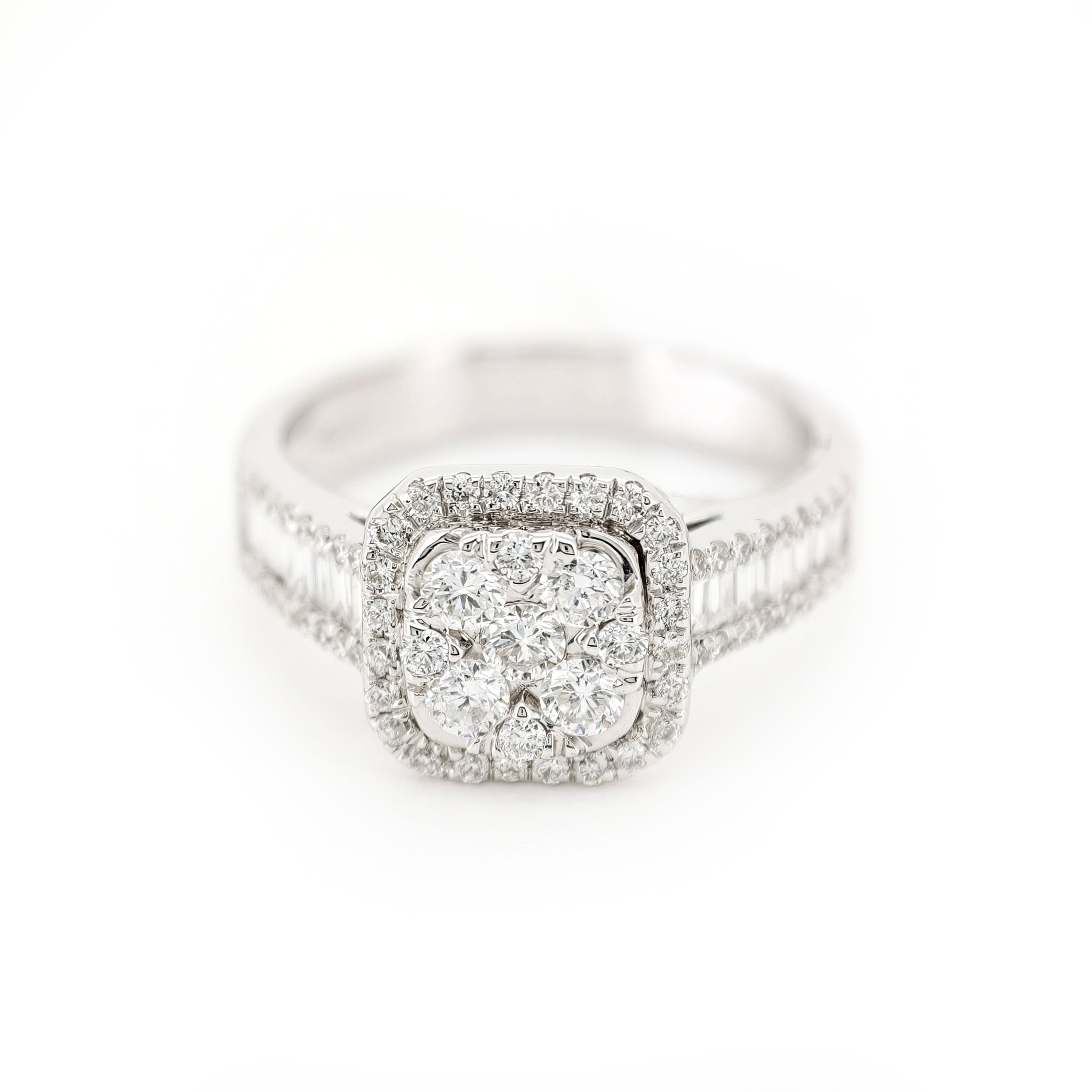 This elegant 18K white gold ring features a classic design. The ring is crafted to perfection, showcasing the timeless beauty of diamond accents. Ideal for any occasion, it embodies sophistication and style.
