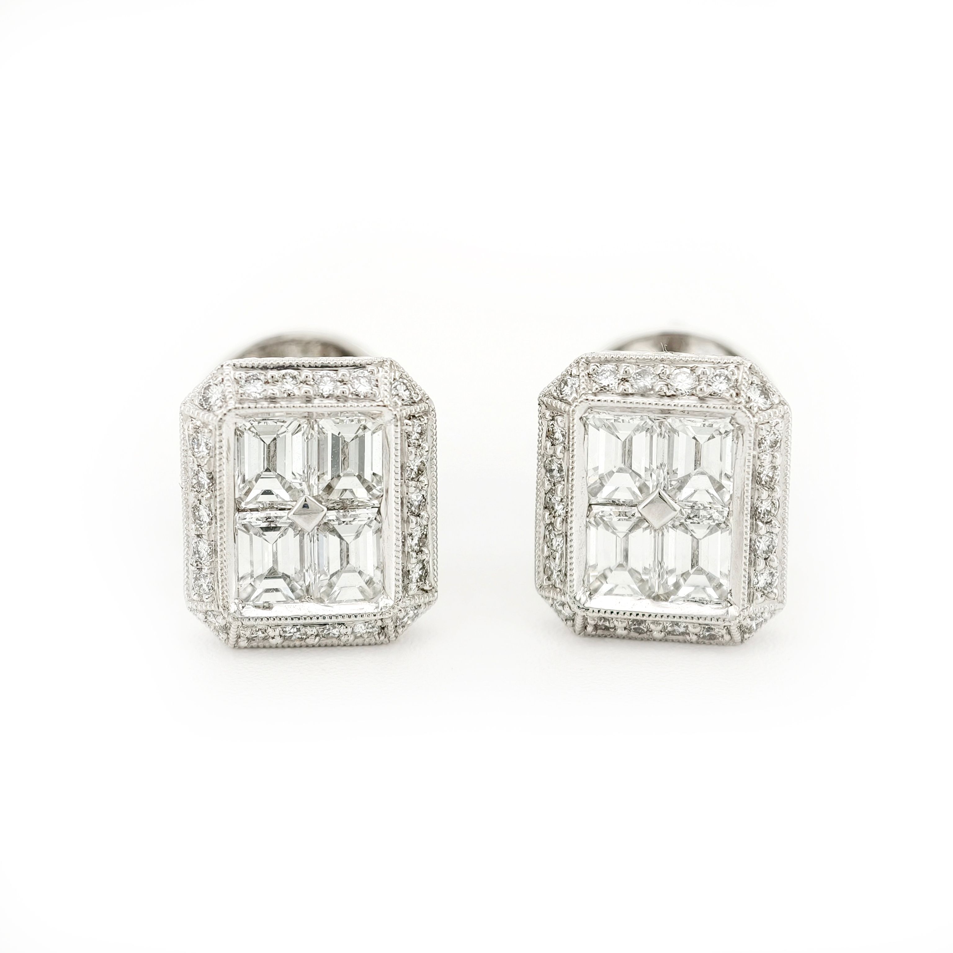 18K white gold earrings sparkle with diamonds, featuring graceful design, refined craftsmanship, polished luxury, luminous brilliance, elegant contours, sophisticated allure, and timeless wearable artistry.