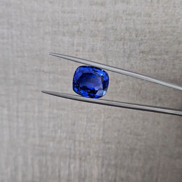 • GRS certified sapphire • Stone type: Sapphire • Quantity: 1 • Color: Intense To Vivid Blue • Shape: Cushion • Carat weight: 12.69 • Origin: Sri Lanka (Ceylon)