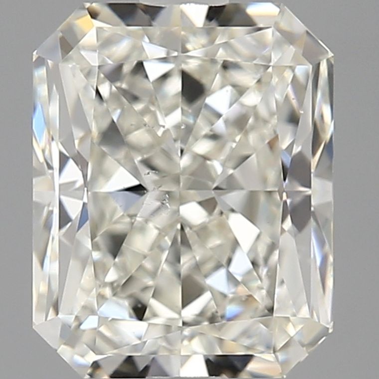 Natural white radiant diamond, 2.02 ct, J color, SI1 clarity. Graded by GIA.