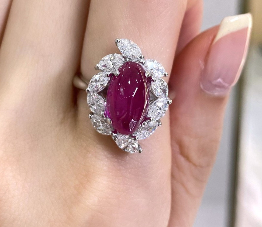 A vivid ruby ring that shines with passion and grace in 18K white gold.