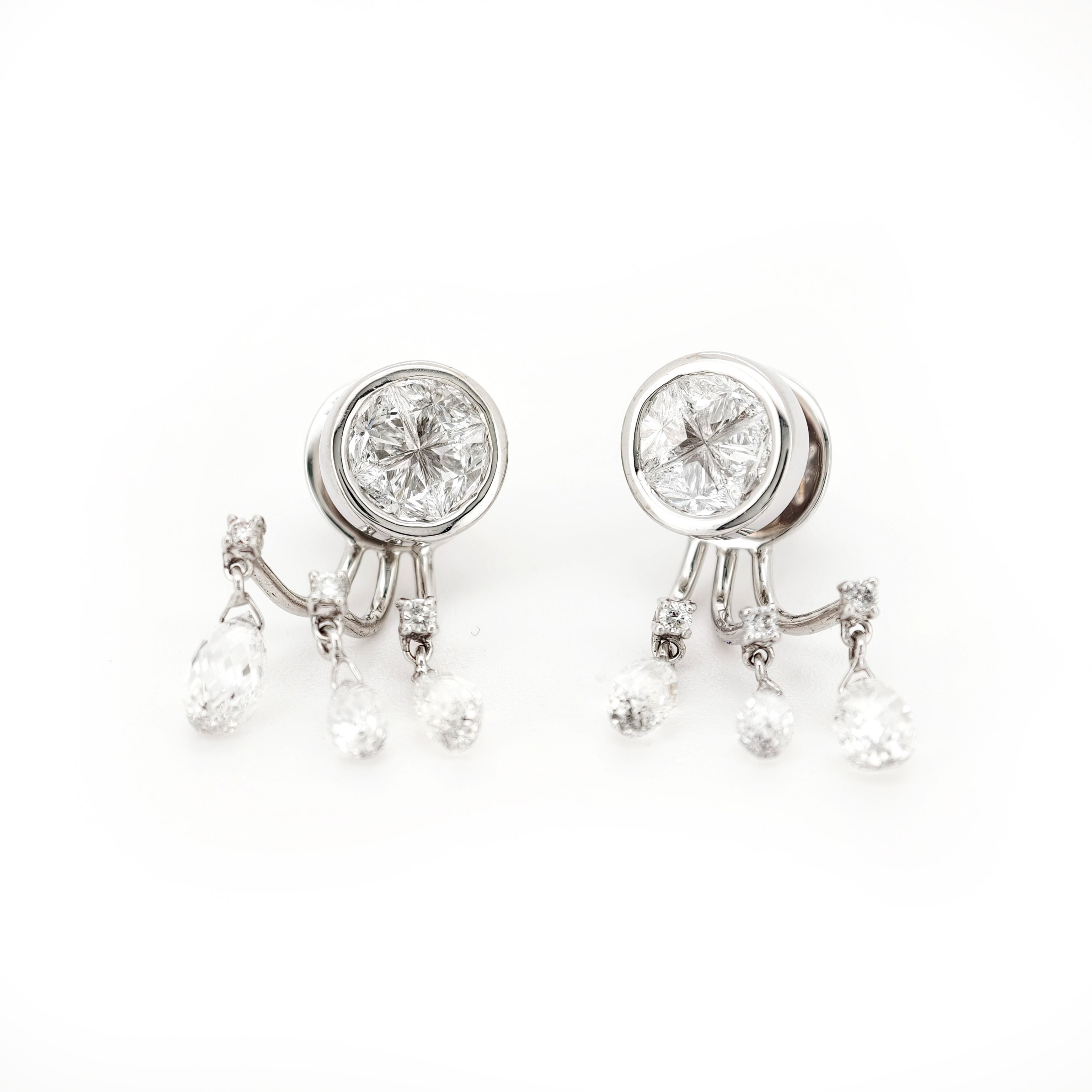 18K white gold diamond earrings exude radiant brilliance, graceful design, polished luxury, sophisticated sparkle, refined contours, exquisite artistry, and timeless wearable elegance.