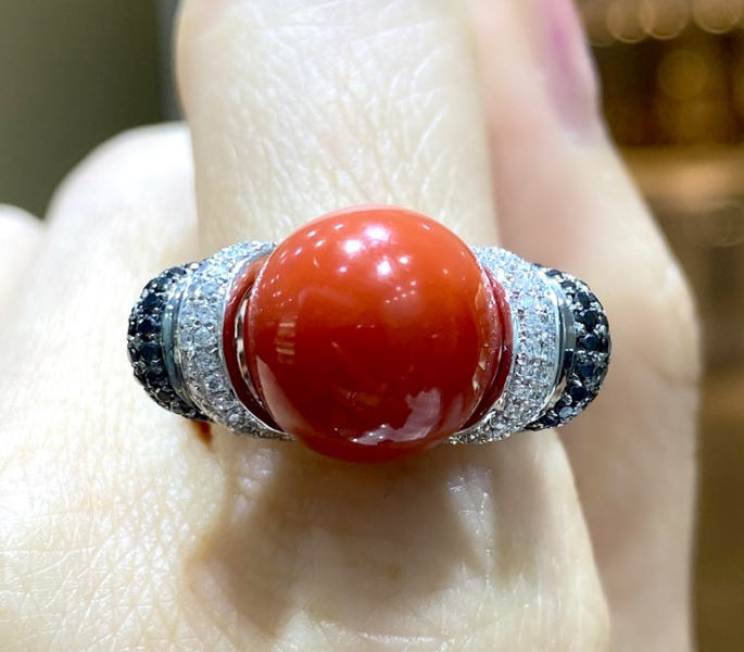 This vibrant 18K white gold coral ring brings a natural splash of color and energy to your jewelry collection.